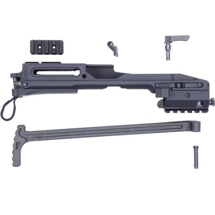 The USW-G20 conversion kit is the ultimate add on for the Glock 20 and 21 and other models in 10 mm or .45. It offers the operator the choice of using the pistol in the traditional way as well as with the built in folding stock, while the transition only requires less than a mere second. Due to its elaborated design, the operator can use the optionally available red dot sight and the original open sights as back up.