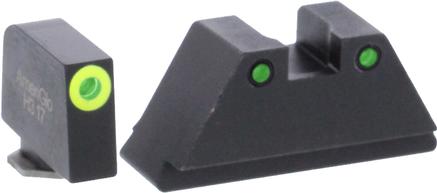 Green Tritium LimeGreenLumi Rnd Outline .315/Black .394 for Glock Tall Supp