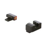 Sight set with green tritium lamp, orange outline front and serrated rear for Glocks.