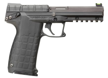 Slide and barrel are 4140 steel, frame is 7075 aluminum. Grip, slide cover, trigger, mag release, and safety levers are glass reinforced Nylon (Zytel), much like other Kel-Tec Pistols. Magazine is Also Zytel and holds 30 rounds, with round count ports. Other features include: dual opposing extractors for reliability, heel magazine release to aid in magazine retention, dovetailed aluminum front sight, Picatinny accessory rail under the barrel, Urethane recoil buffer, captive coaxial recoil springs. PMR30 disassembles for cleaning by removal of a single pin.Calibers: .22 Magnum (.22WMR)