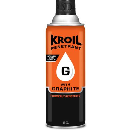 Kroil Penetrant with Graphite is a unique blend of oils, solvents and graphite engineered to penetrate the smallest gaps of corroded metals to loosen seized parts. Eases the removal of large metal fasteners, components and equipment parts. The graphite is designed to stick to metal and provide long lasting lubrication, which will remain in place even in temperatures up to 700°F (371°C). Made in the U.S.A. 50-State VOC Compliant.