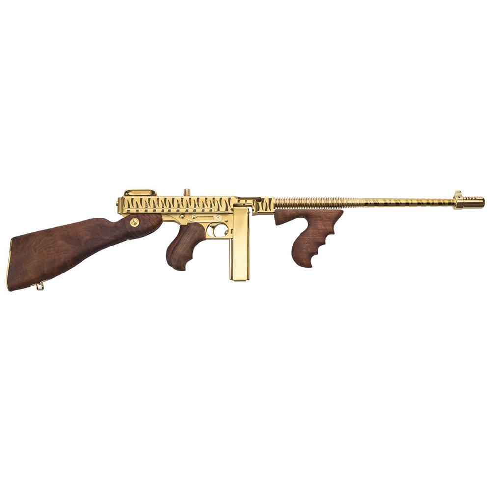Thompson 1927A-1 "Deluxe Semi-Auto", Titanium Gold Plated with Tiger Stripe. Shipped with 50 round drum magazine and 20 round stick magazine