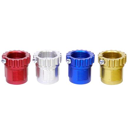 Lee Spline drive Breech Lock Bushings 4 pack. New, easy grip splined drive surface allows easy, accurate and fast die installation in your press. Reloading dies are confusingly similar looking, so we anodized and colored the bushings so you can “color code” your dies for quick positive identification. No need for lock rings on your dies with these quick-change bushings. Simply lightly tighten the clamp screw, and split collar will put a vice lock on your die. Loosen the screw, and the die will spin freely. Once set you’ll never lose position.