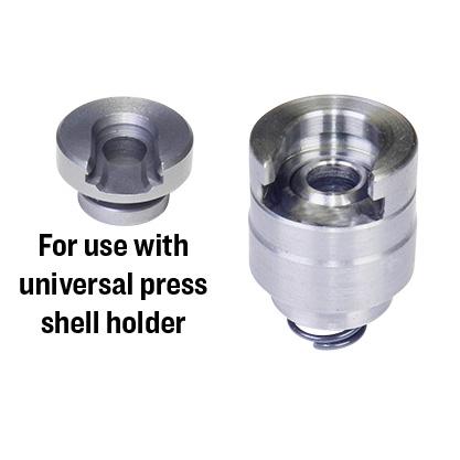 Universal shell holder adaptor for unlisted cartridges. This adaptor must be used with one of the complete primer pocket swage units select the one with the primer size you wish to swage. Install any press type shell holder with an outside diameter of 13/16 (20.6mm) or smaller.