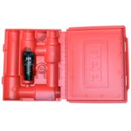 Large Caliber Rifle Micrometer adjusting screw with red 4 die storage case. Allows you to keep your micrometer installed on your Lee bullet seating die inside of the case.