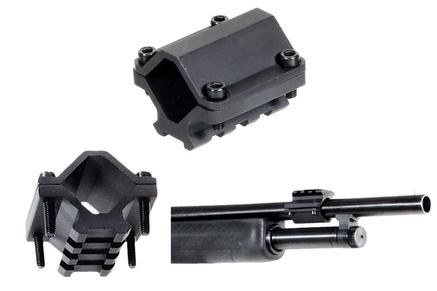 The Leapers UTG Paintball Rail Barrel Mount features an innovative three-piece design that easily and securely clamps to the barrel of your favorite shotgun or paintball gun. This rail barrel mount is compatible with barrels between 0.75 and 1.1 inches in diameter or with flashlight tubes between 0.75 and 1.1 inches in diameter.