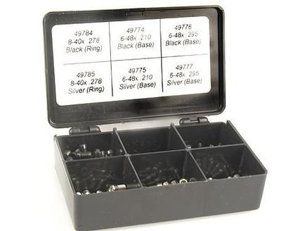 The Leupold Torx Head Screw Kit contains 70 Torx ring screws and 80 Torx base screws, a mixture of black and silver. Organized in a black polymer box, these Torx screws are important to keep on hand if you have and use a Leupold scope.