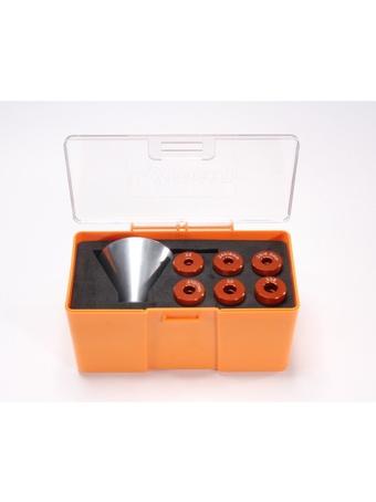 Lyman’s Precision Funnel Set is the 'Perfect' system for the serious reloader. The Brass Smith Precision Funnel Set is made to be completely static free, no more powder clinging to surfaces which can happen with lightweight plastic funnels. The solid construction and quality of the Brass Smith Precision Funnel Set will be apparent in its first use. This is no “one size fits all” funnel, the Brass Smith Precision Funnel Set uses precision machined, caliber specific inserts to properly fit the case neck. The inserts can be quickly and easily installed by simply pushing them into place and then pulling them out when changing calibers. The Brass Smith Precision Funnel Set also comes with a padded storage case that neatly stores extra inserts when not in use. The funnel comes with inserts for 22, 243/6mm, 25/6.5mm, 270/7mm, 30 and 338 caliber rifle cartridges.