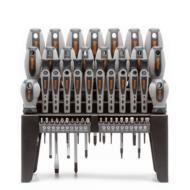 Pachmayr’s screwdriver sets provide all the bits needed by gunsmiths and all those who work on firearms. These complete sets come with bits for slotted screws, hex screws, 6-lobe screws, and Phillips screws; in addition to an assortment of specialty bits. The specialty bits include a Weaver scope ring bit, Glock front sight bit, 1911 grip bushing bit, as well as .062”, .093” and .118” pin punches. The sets also include a ratchet wrench so the maximum torque can be applied to those tough-to-remove screws. The bits for slotted screws are hollow ground, so they properly fit screw slots and prevent cam-out which creates ugly, damaged screw slots. The sets are packed in compact, convenient storage cases.
