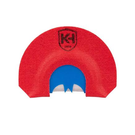 - Place the call in the roof of your mouth with the printed K&H logo on top and the reeds facing out.