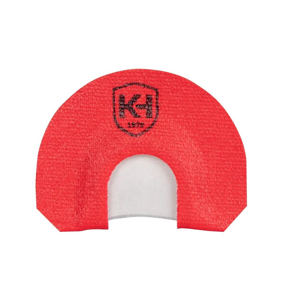 - Place the call in the roof of your mouth with the printed K&H logo on top and the reeds facing out.