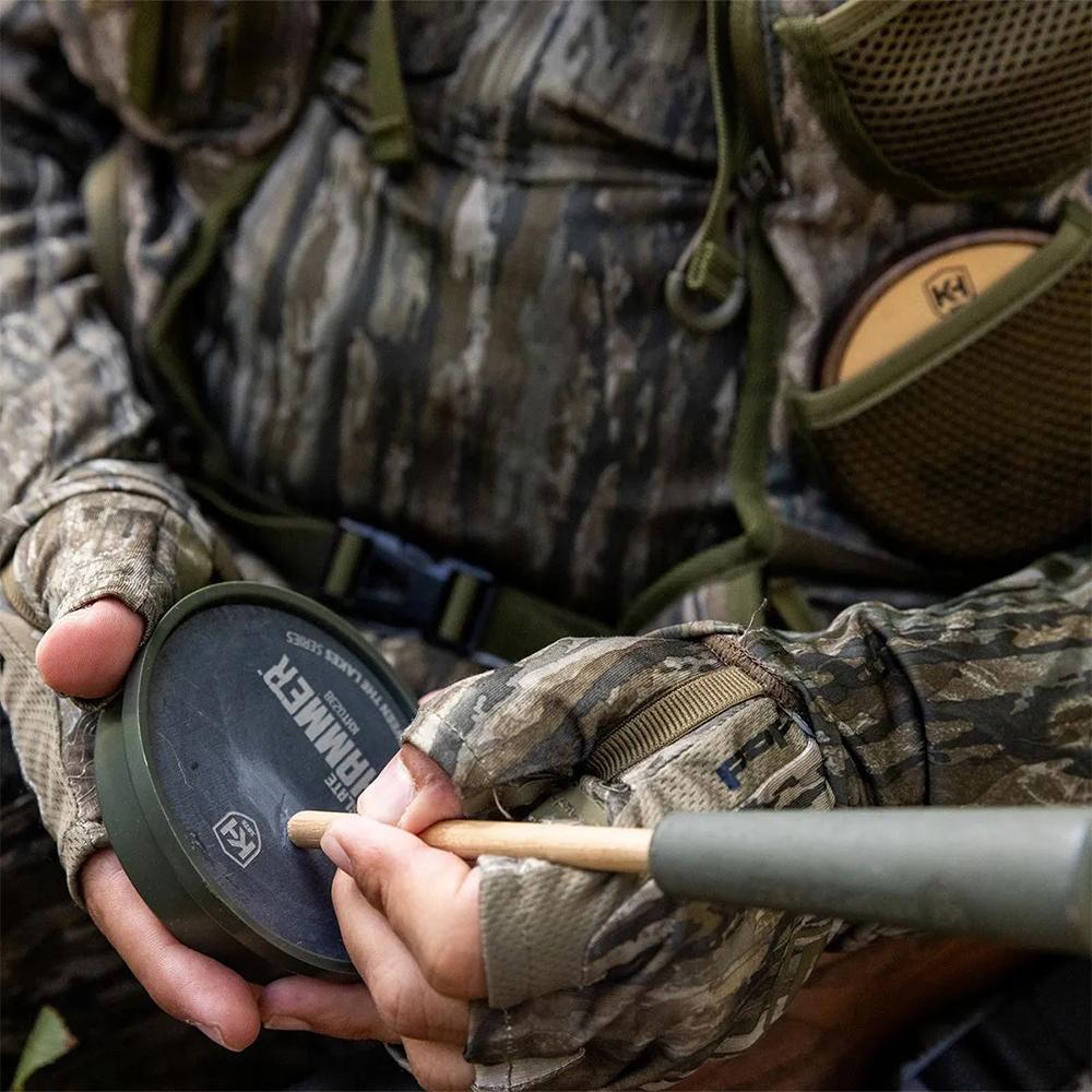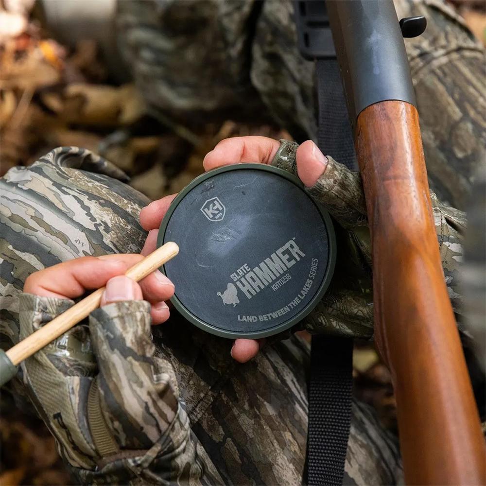 The Slate Hammer is a durable, injection-molded polymer pot call perfect for those working in difficult terrain where a call may be damaged. At an economical price point, this call is perfect for beginners but has a robust sound range of yelp, clucks, cuts, and purrs that any hunter would be happy to have in the turkey woods. Condition the striking surface as needed using the included scouring pad to get your preferred sounds. To learn the basics, read our listed techniques below.