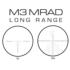 The main horizontal stadia also features .1 Mil hash marks spaced at .1 Mil increments between the 3 and 5 MIL holds. The bottom side of the horizontal stadia features .2 Mil increment hash marks on the main vertical stadia. .1 MIL rings mark every whole MIL. Windholds are provided in .2 Mil increments on both sides of the vertical stadia along the .1 Mil rings at the whole Mils, .5 MIL wind dots are provided along the half-Mils between every whole Mil. If you prefer to dial the turrets to a precise aiming point, the M3 features a 0.05 Mil center dot to hit your mark