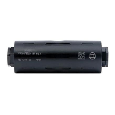 The Aurora-II is threaded on both ends, making it compatible with Metric and Standard thread pitches. The Aurora-II is made from Military Grade 70-75T6 aluminum, with the internals composed of 8 neoprene wipes and 3 petroleum jelly-filled spacer baffles. Because it weighs 3.5 oz, it does not require a Nielsen device.