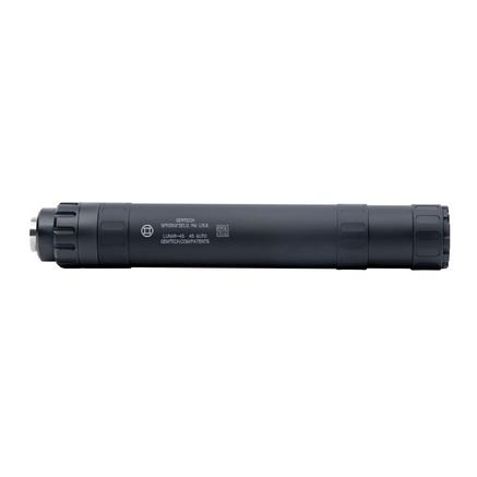 Modular .45 caliber silencer. Intended use: 45ACP. Also compatible with 9mm, 40S&W (dry only), 10mm (dry only) and Subsonic 300BLK.