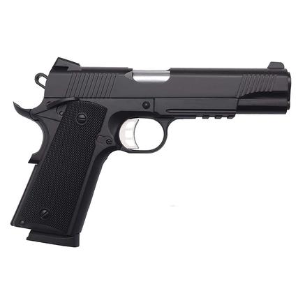The 1911-B is and upgraded 1911 in 9mm with various features. It features 70 series internals, a hammer forged stainless steel barrel, Novak style dot sights, a flared ejection port, and a black cerakote finish. It also features and extended beavertail style grip safety, enhanced trigger, extended ambidextrous thumb safety, and beveled magazine well. Includes two 9 round magazine, mounting rail, and cleaning kit.