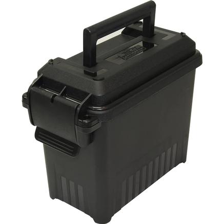 MTM Case-Gard’s family of Ammunition Cans has grown to include a MINI size. This Mini size, is ideal for storing bulk ammo, boxed handgun ammo and 101 other uses. These comfortably handled ammo cans are molded out of rugged polypropylene plastic and will hold up to years of service. The Mini ammo can is not so mini, when you consider, it will hold 700 rounds of 9mm bulk ammo. 400 rounds 45 ACP or 223 bulk ammo. Utilizing MTM's tongue and groove O-Ring seal system for a superior water-resistant seal, Non-submersible. Double padlock tabs along with molded-in stacking ridges, make these solid containers the perfect solution to so many storage needs. 12-pound carry capacity. Made in the USA