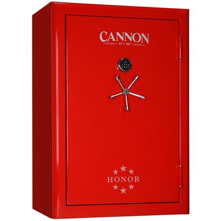 The Cannon Honor 57-Gun Safe is the perfect solution for secure storage and organization of electronics, heirlooms, cash, paperwork, jewelry, firearms, and other valuables. Twelve 4” locking bolts, plus a re-locker system ensures pry protection and burglary prevention that’s unmatched by other safe manufacturers. A three-way locking system includes a biometric chrome + electronic lock with a backup key, backed by a triple hardened plate to protect the lock from drill attacks.