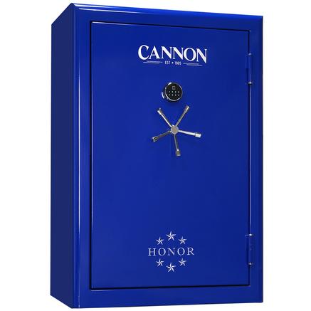 The Cannon Honor 57-Gun Safe is the perfect solution for secure storage and organization of electronics, heirlooms, cash, paperwork, jewelry, firearms, and other valuables. Twelve 4” locking bolts, plus a re-locker system ensures pry protection and burglary prevention that’s unmatched by other safe manufacturers. A three-way locking system includes a biometric chrome + electronic lock with a backup key, backed by a triple hardened plate to protect the lock from drill attacks.