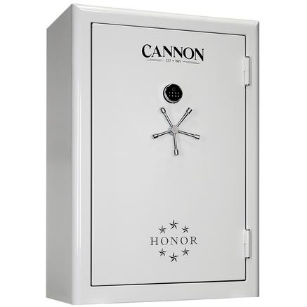 The Cannon Honor 57-Gun Safe is the perfect solution for secure storage and organization of electronics, heirlooms, cash, paperwork, jewelry, firearms, and other valuables. Twelve 4” locking bolts, plus a re-locker system ensures pry protection and burglary prevention that’s unmatched by other safe manufacturers. A three-way locking system includes a biometric chrome + electronic lock with a backup key, backed by a triple hardened plate to protect the lock from drill attacks.