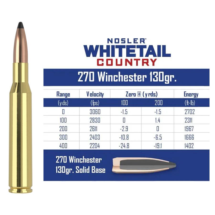 Nosler Whitetail Country Rifle Ammunition .270 Win 130gr SP 3060 fps 20/ct