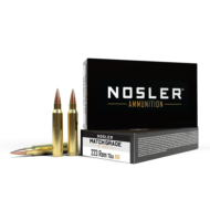 Nosler Match Grade ammunition is loaded with Nosler Custom Competition bullets for one of the most accurate match rifle ammunitions on the market. The bullet’s hollow point provides a small meplat for reduced drag and increased aerodynamic efficiency while the pronounced boat-tail design provides exceptional flight characteristics over a wide range of velocities. Engineered to exhibit unmatched accuracy, Nosler Match Grade ammunition rivals all others on the range.