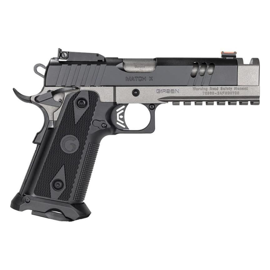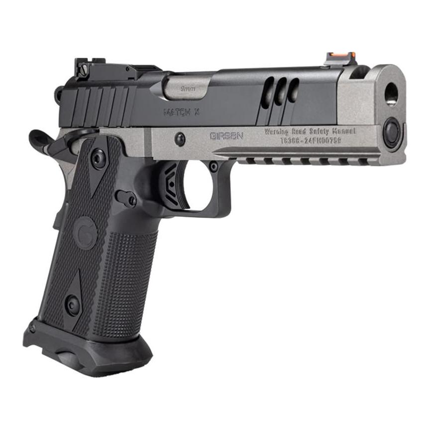 The Girsan Witness2311 Match X is a full-size, lightweight double-stack 1911 chambered in 9mm, designed to deliver performance and value. It features an integrated barrel compensator that effectively reduces felt recoil, providing shooters with greater control and accuracy. Its fully adjustable, serrated rear sight—blacked out for better focus—pairs seamlessly with a fiber optic front sight for fast alignment and quick target acquisition.