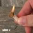 Pull edges of tinder apart to create as much surface area as possible. As close as possible, strike a spark repeatedly until tinder ignites.