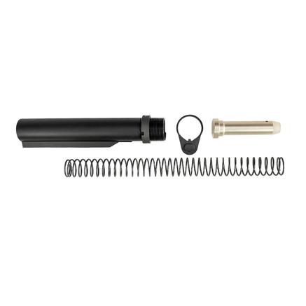 Finish your AR15 lower with this dependable 6-position buffer tube kit. The 7075-T6 aluminum tube is CNC-machined and hardcoat anodized for strength and long-term durability. It includes the carbine buffer, Mil-Spec recoil spring, end plate, and castle nut—everything you need for a solid, adjustable setup.