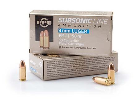 PPU Subsonic Handgun Ammunition 9mm Luger FMJ 158 gr 950 fps 50/ct