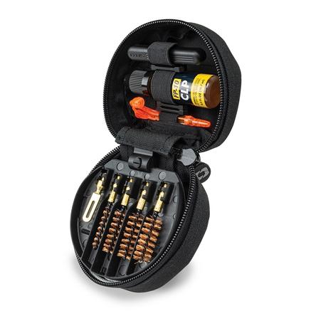 Whether competition shooting or plinking in the backyard, this Universal Pistol Cleaning Kit covers basic maintenance for pistols. The unique cotton patches create swabs for 360 degree coverage, ensuring a proper Breech-to-Muzzle clean for .22-.45 cal. pistols. Four bore brushes are included: .22 cal, .38 cal/9mm, .40 cal & .45 cal. This cleaning kit is proudly made in the USA and contained in a lightweight, compact soft pack case.