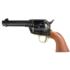 The Pistolero features a 4.75 inch blued barrel with a color case hardened receiver. Featuring a high polished brass backstrap and trigger guard gives this time piece a two-tone effect. All the screws are finished in a charcoal blue and the grips are a classic two-piece walnut.