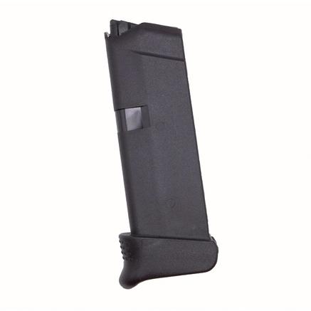 Pearce Grip PG-42+1 extension installed on a factory Glock 42 magazine. This combination adds 3/4" in grip length and one round of capacity making the total capacity 7 rounds.