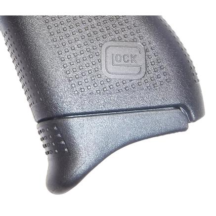 An extension for the GLOCK 43 (9mm). This extension replaces the magazine floor plate adding approximately 3/4 in. additional length resulting in better control and comfort without altering the capacity of the factory magazine. This extension is slightly longer than the one provided by the factory (actual length 0.820") and incorporates the factory texture pattern as well as an ergonomic curve for better grip.