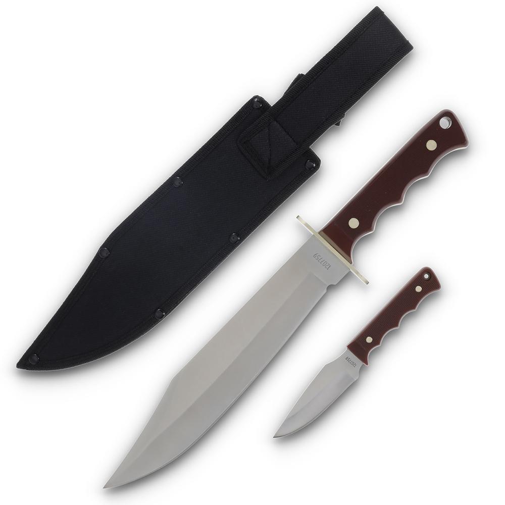 Old Timer Bowie Fixed Blade Combo 10" Bowie Blade 3-1/2" Skinner Blade Brown