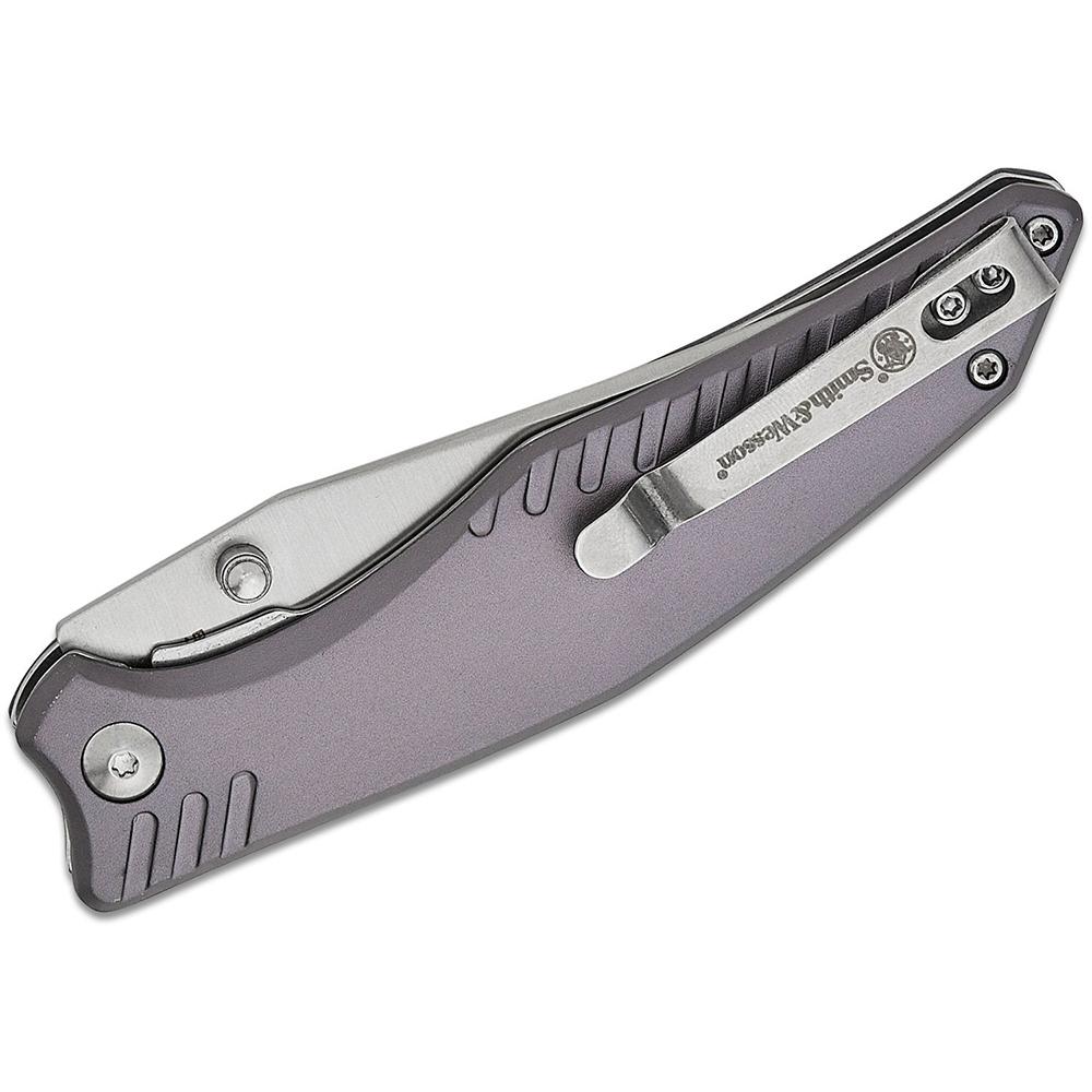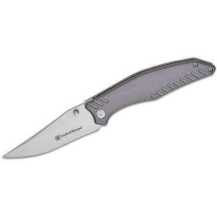 The Smith & Wesson Black Ops Gray Folding Knife is a compact and lightweight knife that is perfect for everyday carry. It features a 3.35-inch satin 3Cr stainless steel clip point blade with a plain edge and a durable gary aluminum handle. It is a manual folder with dual thumb studs. The knife is equipped with a linerlock for secure blade lockup and a stainless steel tip-up pocket clip.