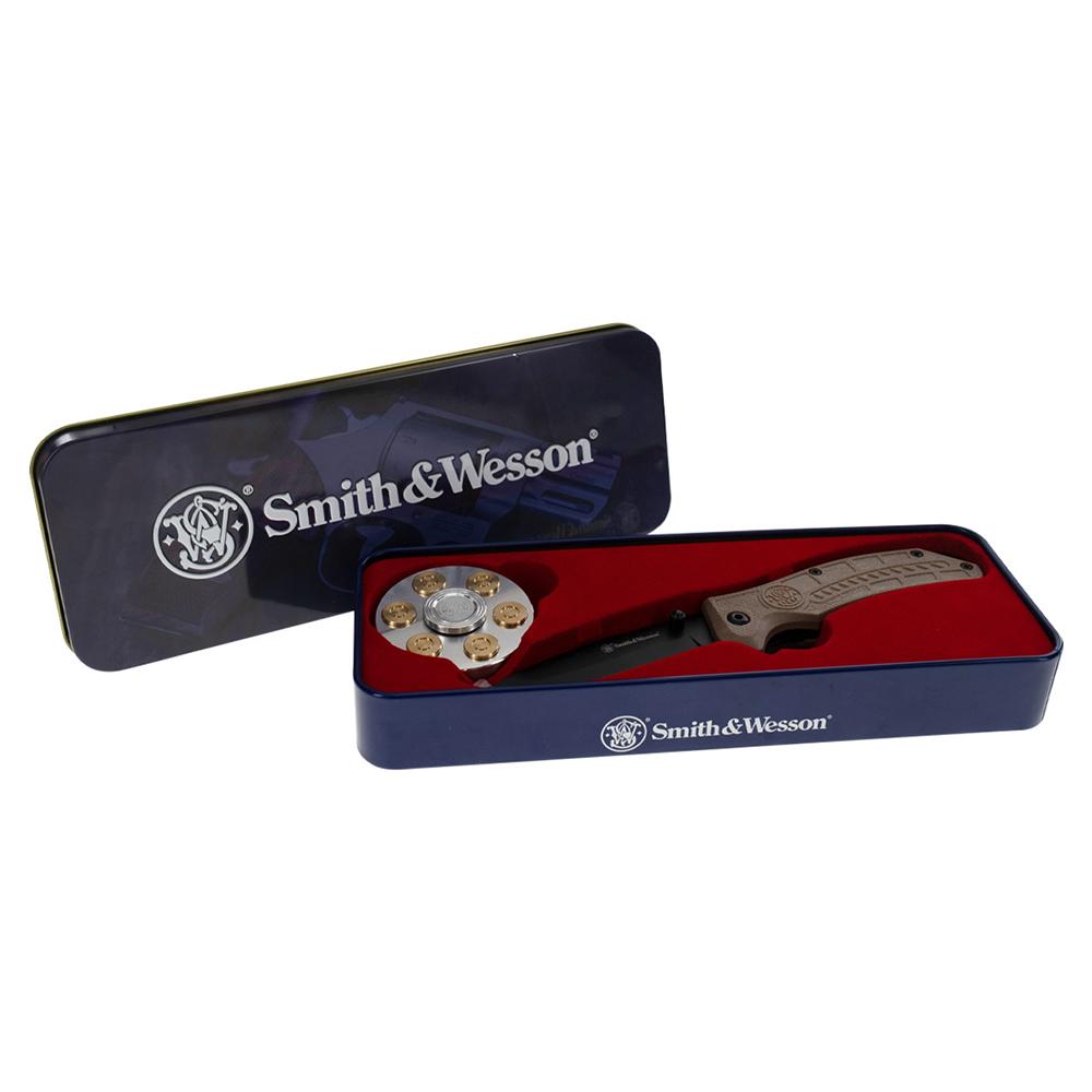 Smith & Wesson Folding Knife and Fidget Spinner Combo 3" Tanto Blade Black Brown