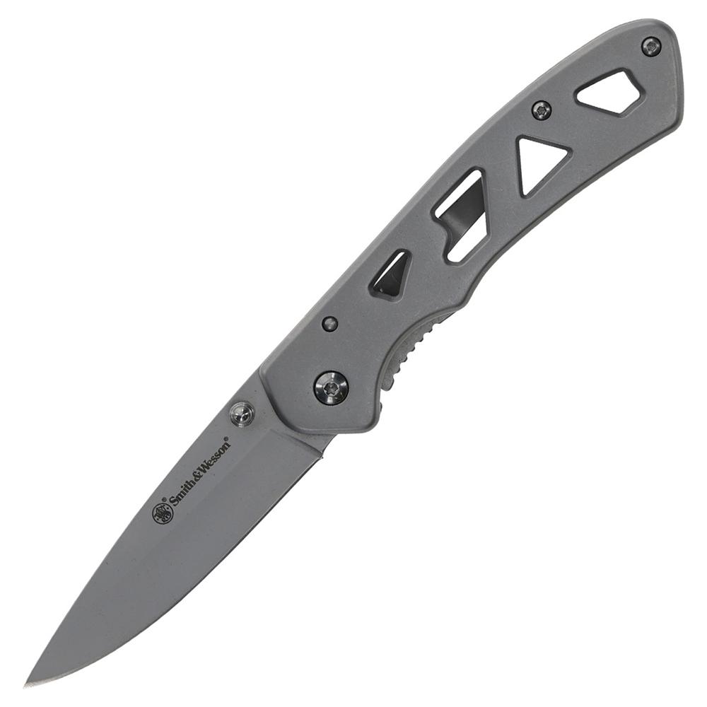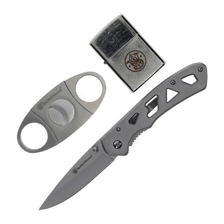 Smith & Wesson Folding Knife Cigar Cutter and Lighter Combo 3" Drop Point Blade Silver