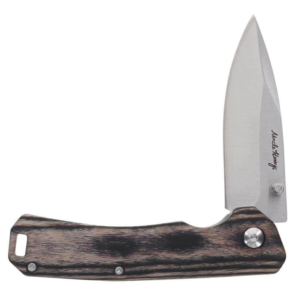 Uncle Henry Folding Knife 3" Drop Point Blade Brown Pakka Wood