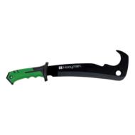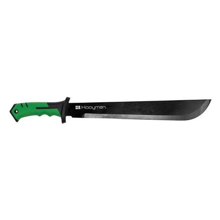 The Hooyman Bush Machete features a thinner, 21.25" long 3CR13 stainless steel blade, perfect for taking down lighter bushes and tall grasses. The ergonomic, signature green NO-SLIP H-GRIP handle ensures a secure grip when slicing through bushes. A custom sheath with belt loops for easy carry is included, as well as a peg hole in the handle for easy storage.