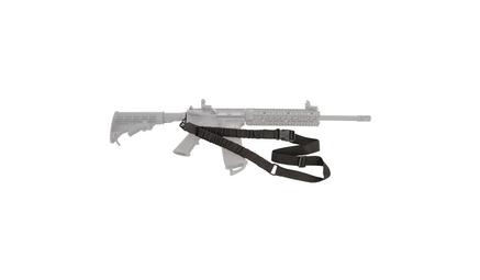 Single attachment point slings have quickly become the standard for field carry of AR platform guns as well as many other firearms. This heavy duty bungee sling easily attaches to the gun with its steel carabiner clip and the nylon strap with quick release buckle adjusts for length. The gun is held in a safe and convenient muzzle down ready position.
