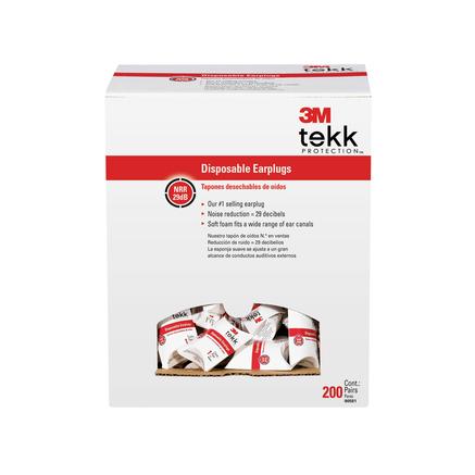 3M Tekk Protection, NRR 29DB, Disposable Earplugs, Soft Foam Expands Slowly To Fit A Wide Range Of Ear Canals.