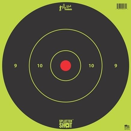 8 inch Pro-shot Green Bullseye Target Features Splattershot, making it easy to see where the shooter is hitting the paper.