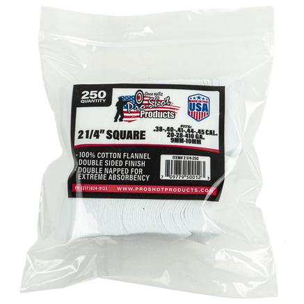 2 1/4" Square, .38 - .45 CAL. / .20 - 410 GA 100% Cotton Flannel Gun Cleaning Patches - 250 COUNT