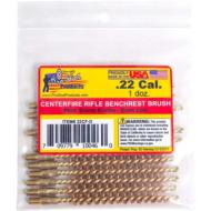 Pro-Shot Brass Core and Bronze Bristles (Benchrest Type) Designed for competition shooters to withstand frequent use. Construction consists of a high quality brass core and coupling with bronze bristles. The Pro-Shot Benchrest Quality Brush has been used for many years with several world records to its credit. This bore brush is exceptional for bore cleaning with superior cleaning ability and it will not harm the bore. All Pro-Shot Benchrest Bore Cleaning Brushes have a specific size for each caliber with each brush being oversized for extended life. American Standard #8-32 thread.