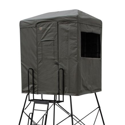The Landmark 550 Blind was designed and constructed to resist the elements year after year. The interior space is 6’ x 4.5’ so you can comfortably hunt with 2 people and all of their gear. The durable steel frame is covered with marine-grade reinforced synthetic tarpaulin, made from the same rugged materials used in pick-up truck tonneau covers. The window layout allows the hunters to completely customize their shooting windows while being able to shoot almost all 360° out of the blind itself. Each window features and adjustable sliding shooting rail so hunters can set it to their desired height. The hinged door provides plenty of space for easy entry and exit and shuts tight to conceal the blind from the elements. If you’re looking for an affordable year-round shooting house with enough room for group hunts and archers, the Landmark 550 Shooting House is the setup for you!
