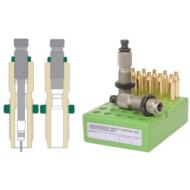- The die box is a handy cartridge loading block and storage package. Inside is a spare decapping pin, hex wrench, and even a place for your shellholder!