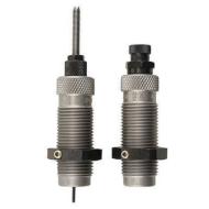 This two-die set is intended for reloading bottleneck cases, and consists of a Full-Length Sizer Die with an Expander-Decapping Unit, and a Seater Die with Bullet Seater Plug. The Full-Length Sizer Die brings the case to SAAMI minimum cartridge dimensions. It sizes the outside of the case, de-primes and expands the neck to accept the bullet. The die has vents to prevent case damage caused by trapped air and for excessive lubricant. Headspace is held to minimum tolerances to avoid changing the case body length during full length sizing. The included Seater Die has a built-in roll crimper to secure the bullet at the same time as it