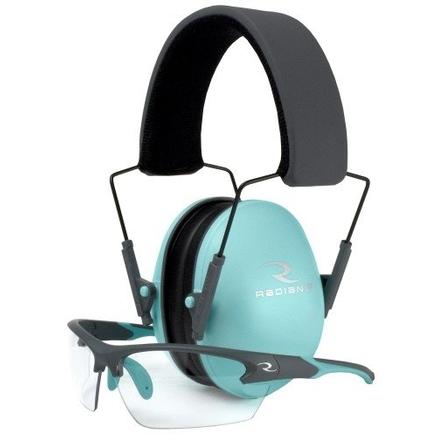 Radians Lowset Ladies Range Combo 21dB Ear Muffs and Charcoal/Teal Shooting Glasses with Clear Lens
