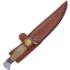 Roper Deadwood Jr Fixed Blade. 6.5" (16.51cm) overall. 3.5" (8.89cm) satin finish 8Cr13MoV stainless blade. Zebra wood handle. Aluminum guard and pommel. Brown leather belt sheath. Boxed. Made in China.